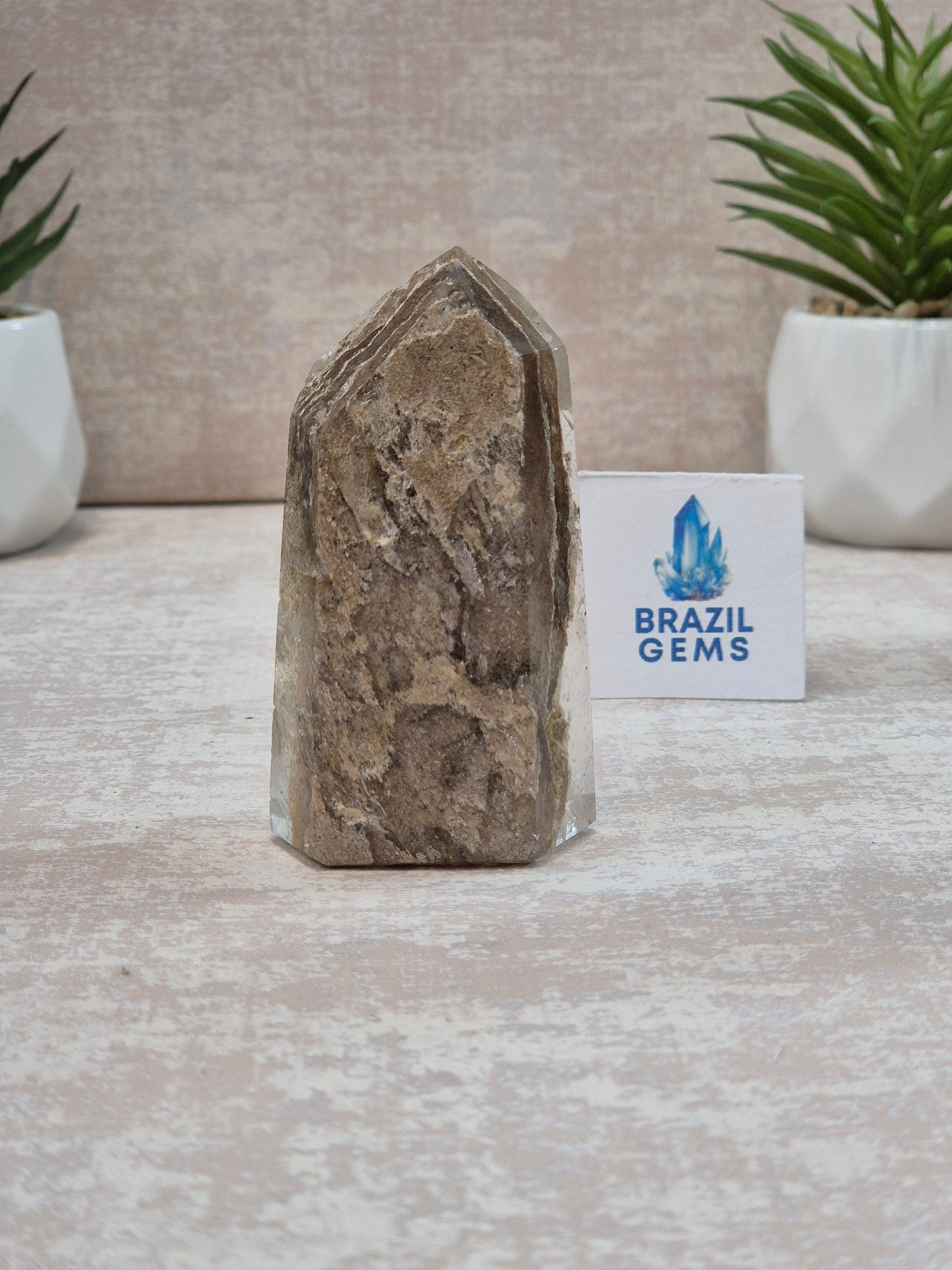 Smoky Quartz with Lodolite Layers at the back Point
