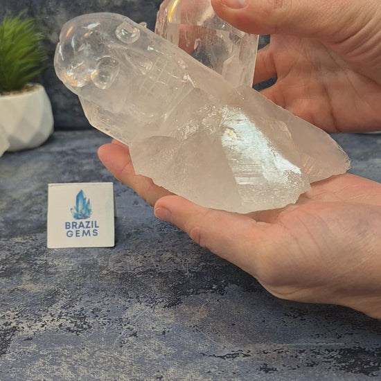 Hand Carved Clear Quartz Skull on Natural Cluster Base
